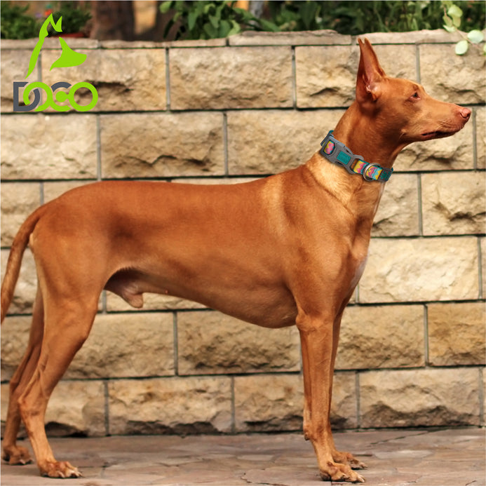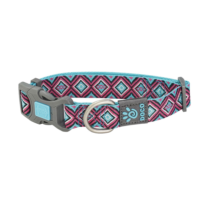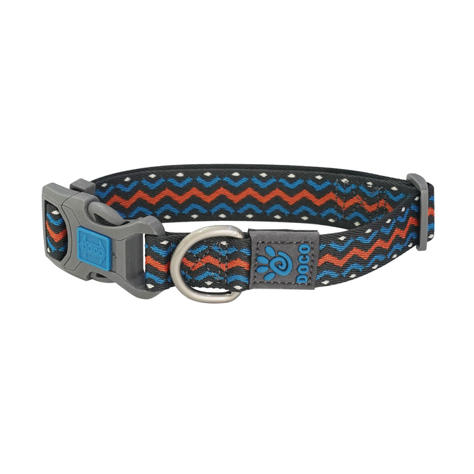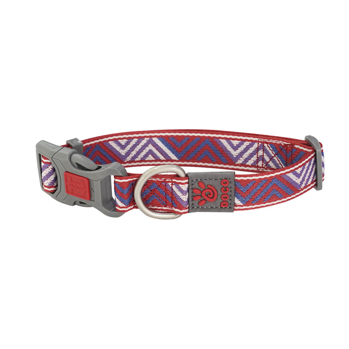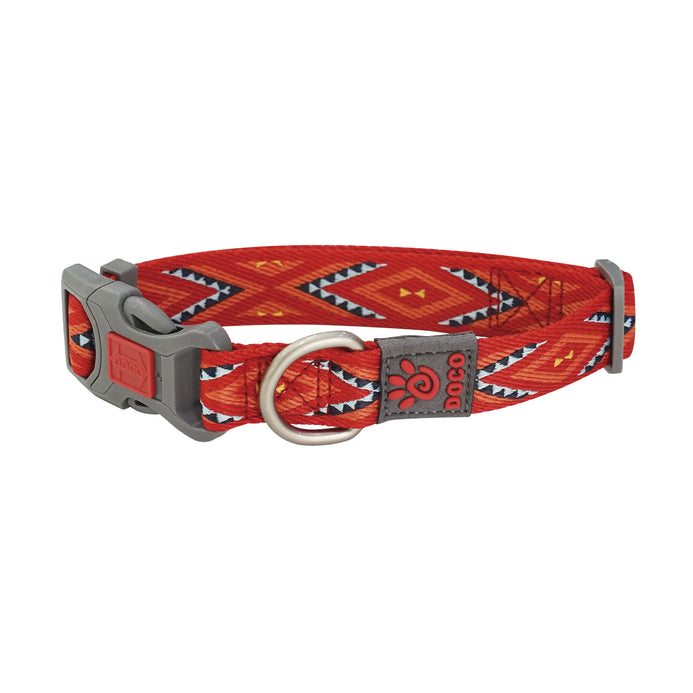 DOCO® Jacquard Weave Collar features soft, Locking Buckle for added security, and adjust-able tri-glide for custom fits. Collars provides a comfort fit between your dog's neck and collar. Heavy-duty stitching for lasting quality and metal D-Ring for attaching identification tag and leash. 20 jacquard patterns to choose from. Make sure to select the matching leash to com-plete your buddies look!