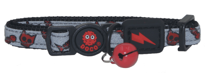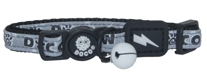 DOCO® LOCO Cat Collar with Safety Buckle are constructed with HIGH quality fun design printed heat transfer sublimation webbing. Collars provides a comfort fit between your cat’s collar and neck. Collar has safety release break away plastic buckle and tri-glide for an easy fitting on your cat. Heavy-duty stitching for lasting quality, Welded Metal D-Ring for attaching for the optional ID attachment for your cat’s tags.