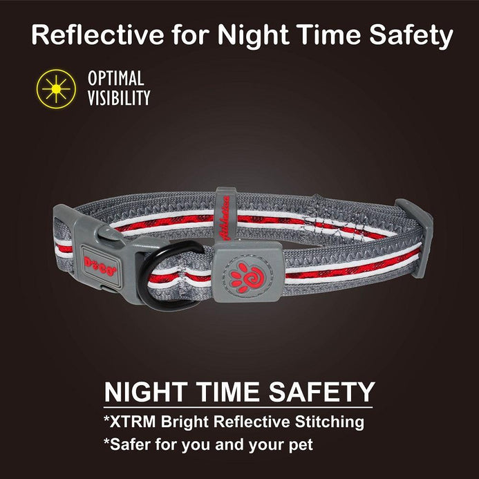 - DOCO® Lunar Air Mesh Collar features lightweight and durable high quality air mesh that provides a comfortable fit, total control and style between your dog's neck and collar. Ultra comfort design reduces pressure while your buddy is pulling. Dual layered mesh for higher tensile strength and more breathability function. Easy on and easy off, durable side release plastic buckle with adjustable tri-glide for custom fits. Reflective rope piping to ensure your buddy is safe and seen at all times. Sewn with heavy-duty stitching for lasting quality and constructed with metal D-Rings for attaching identification tags and leashes. Solid and vibrant colors are easy to see. Make sure to select the matching DOCO® leashes to complete your buddies look!