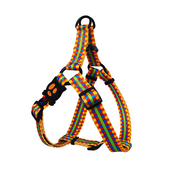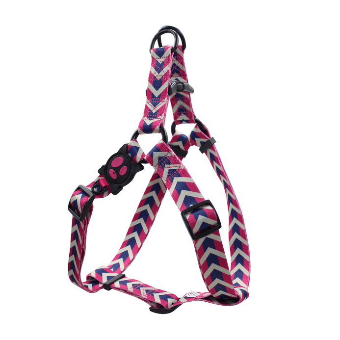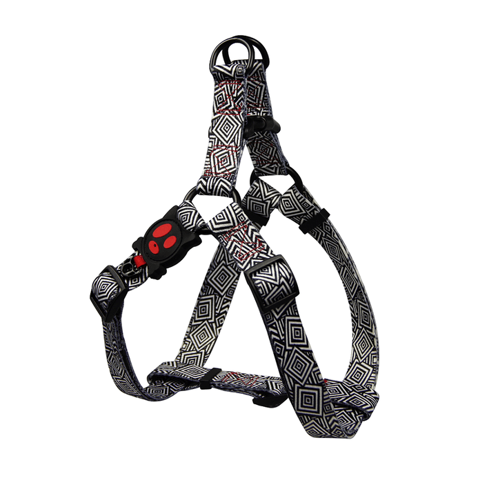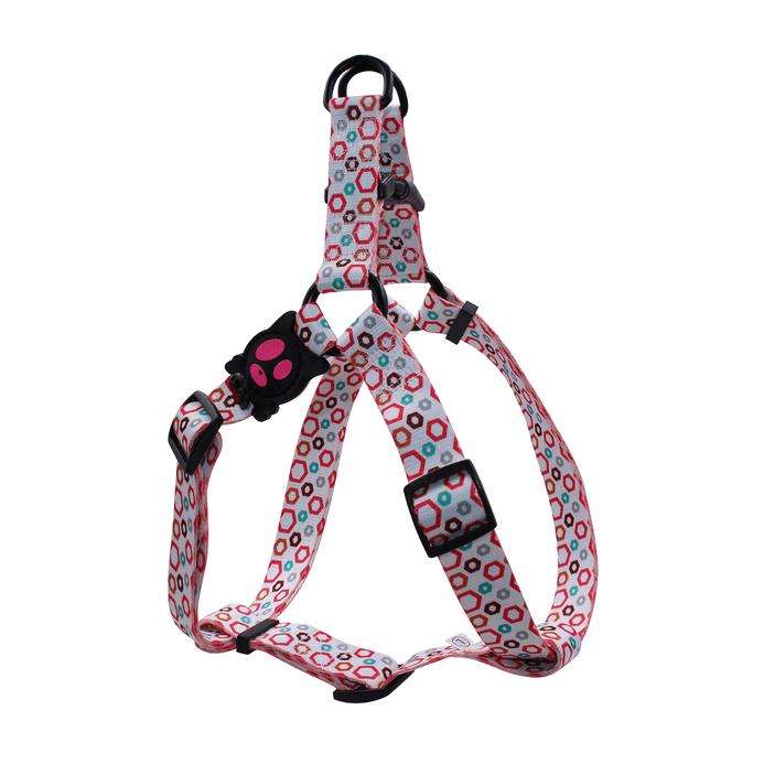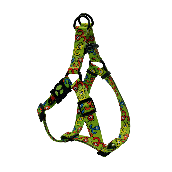DOCO® LOCO Eco-Friendly Heat Transfer Design Step-In Harness features soft, fray resistant material. Provides more comfortable fit and less pressure around neck than classic collars for easier training and outdoor activities. Plastic side buckle on the chest strap that quickly clicks shut and stays put. Designed with adjustable tri-glides chest straps for fast adjustment and customs fits for different girth sizes. Heavy-duty stitching for lasting quality and two metal D-Rings for secure lead. Solid and vibrant colors are easy to see. Make sure to select the matching with DOCO® LOCO Leashes to complete your buddies look!