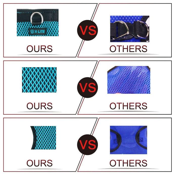 DOCO® X-Lite Front Range Mesh Harness is constructed with our Diamante Mesh. Diamante Knitted mesh is inspired by sporting shoes for lightness and durability. Great for spring and summer months as the X-Lite harness is extremely breathable. The X-Lite harness features with 2 D-Ring attachment points. Back D-Ring for normal walking and the front D-Ring is for anti-pulling and training for easier control. This front D-Ring effectively eliminates choking and pulling. Solid and vibrant colors are easy to see. Make sure to select the matching DOCO® leashes to complete your buddies look!