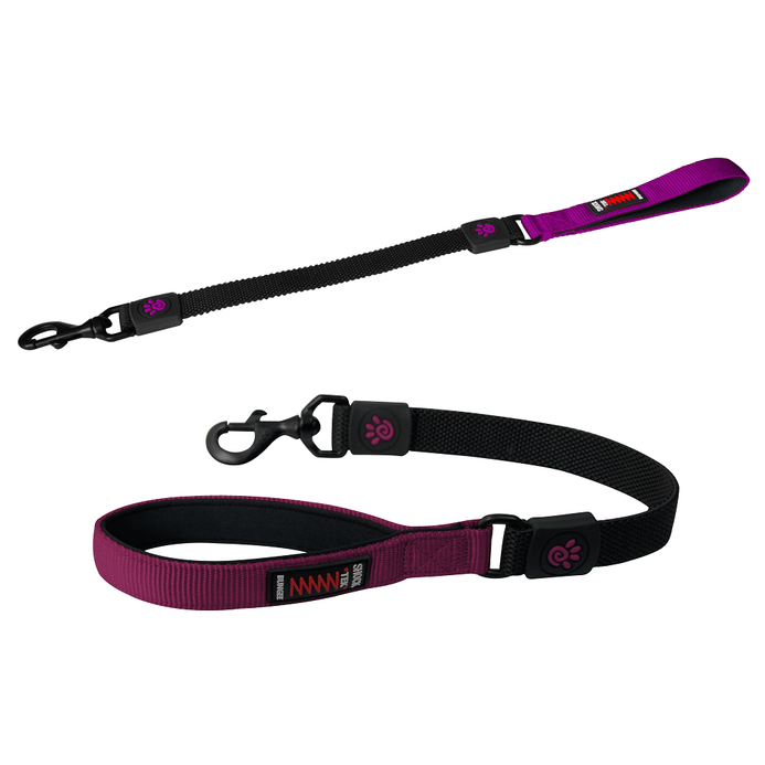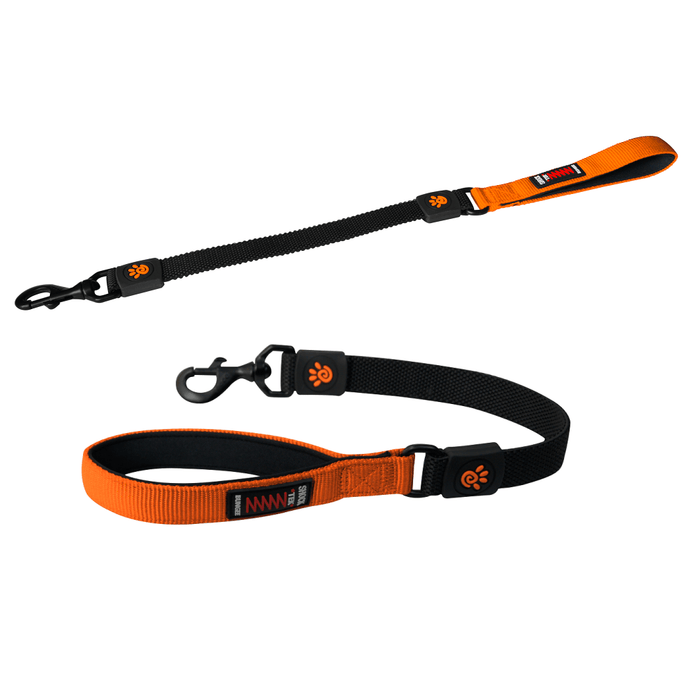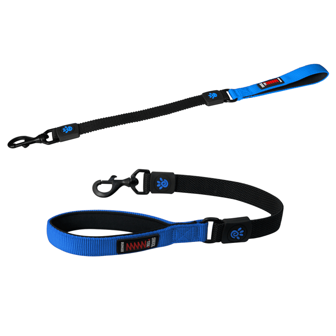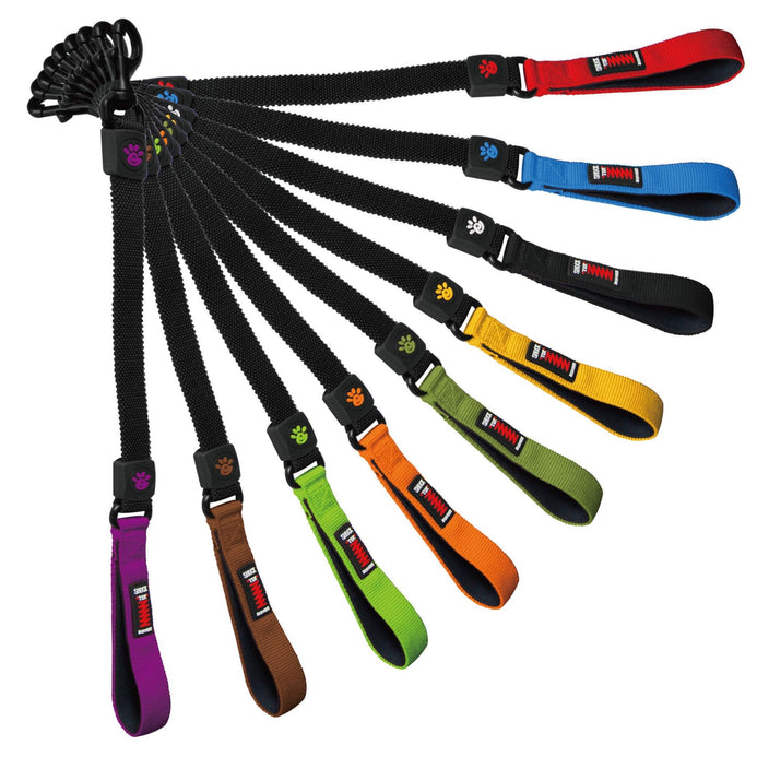 DOCO® 22'' Shock Absorbing BUNGEE Leash features shock absorbing bungee, high quality dual layer nylon and a neoprene handle for added comfort. By gently correcting your dogs jerks, DOCO BUNGEE leash does your shoulders, arms and your dogs neck a favor by absorbing shock. This leash has an 8''(20cm) buffer and has a tensile force of 280kgs. Fully welded square rings and a 360° durable anodized black snap adds to the durability of this leash.