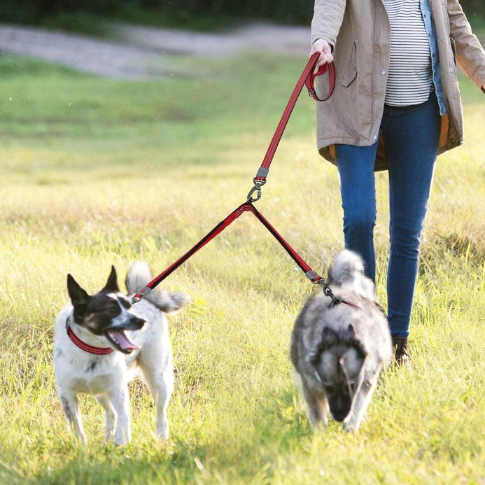 Improve your walking enjoyment and safety when walking more than one dog. Instead of feeling like a maypole, your dogs will learn to work together to move forward instead of getting distracted and pulling you every which way but ahead.