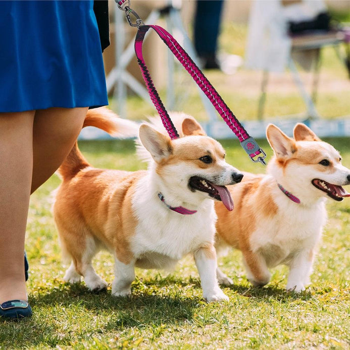 - Bungee cord gives extra freedom when dog pulls with 2 way snap