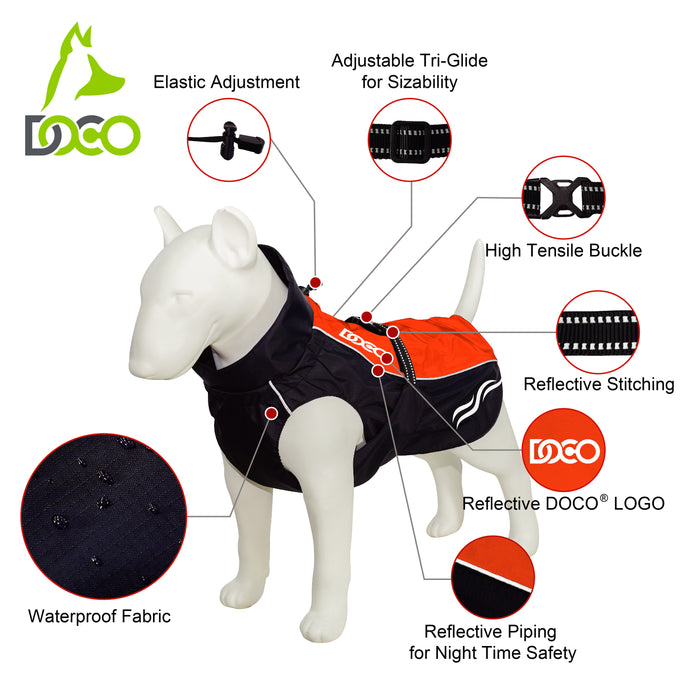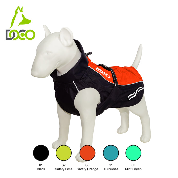 Made of Waterproof Non-Toxic fabric, waterproof and windproof and ideal for keeping your pooch clean and dry on those wet walks. Double-layer design with breathable lining inside, which can make the dog more comfortable. Breast plastic adjustable buckle, easy to adjust different sizes to suit different types of dogs. Dog Raincoat offers reflective strips in its design, ensures visibility of your dog no matter where he treads. The surface of the raincoat is easy to clean,You only need to wipe it gently with water and a cloth to make it clean. The neck can be adjusted to draw rope, can prevent falling off.