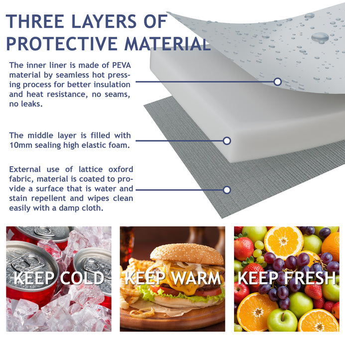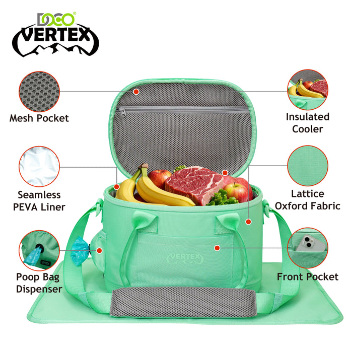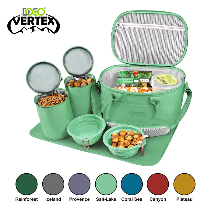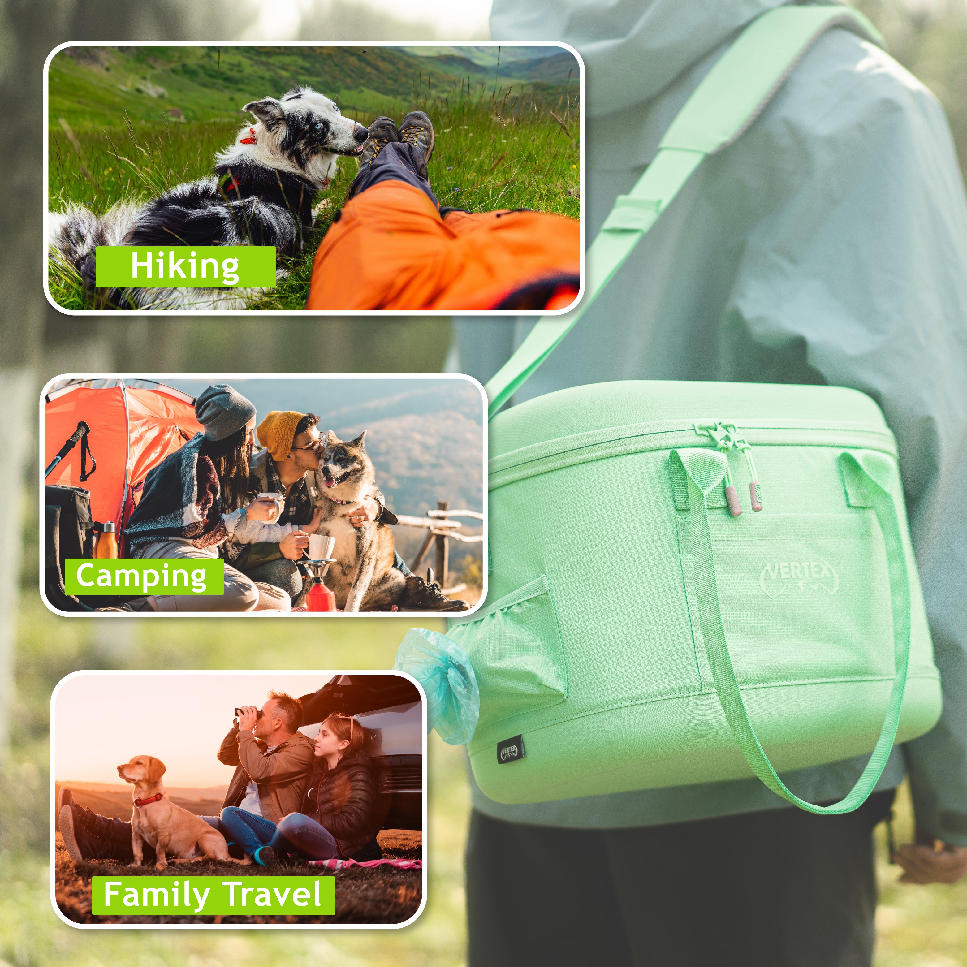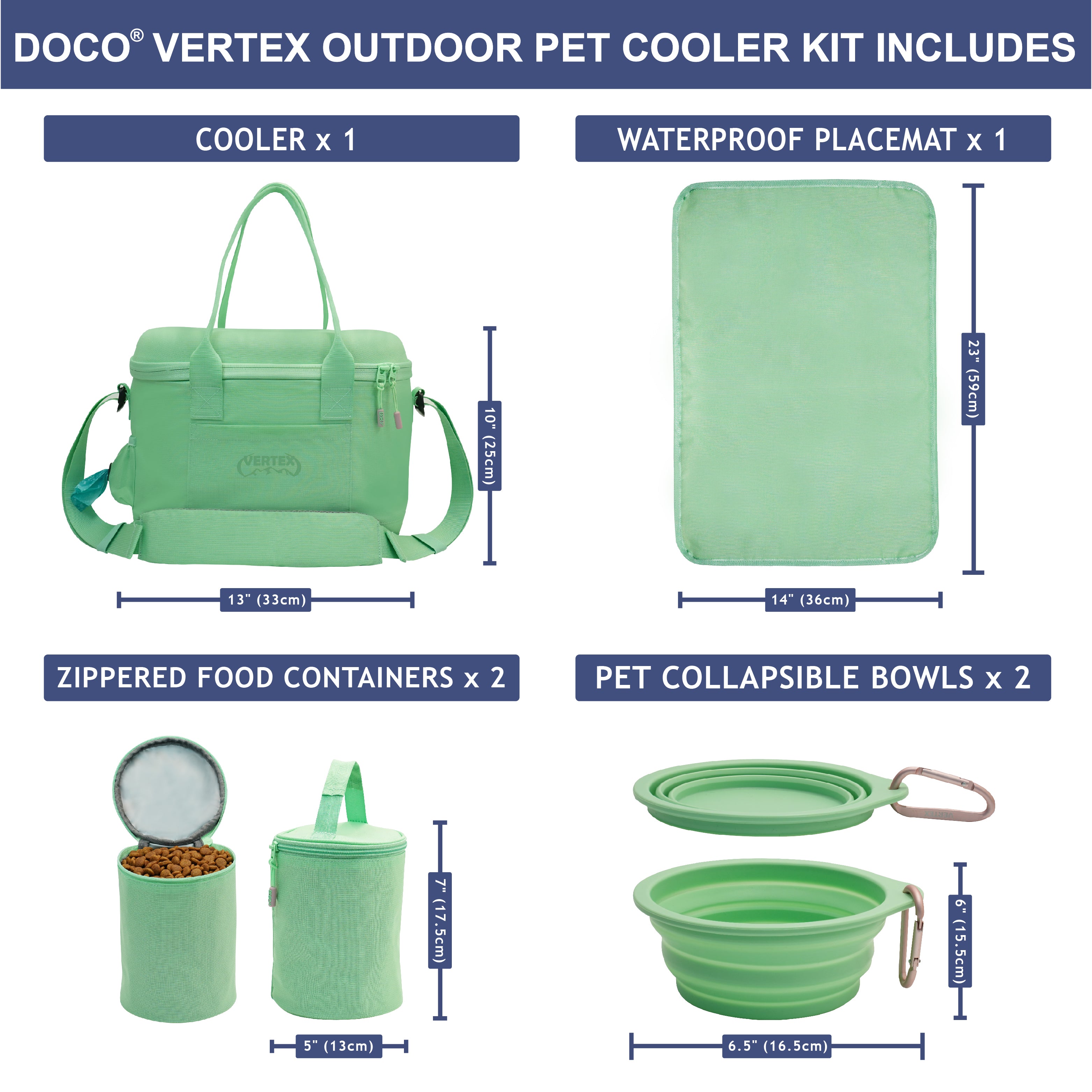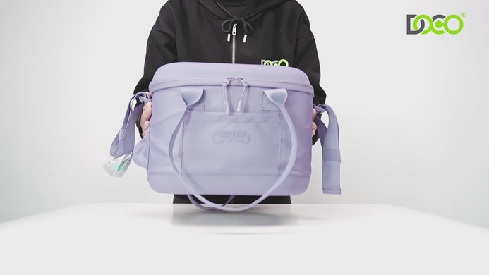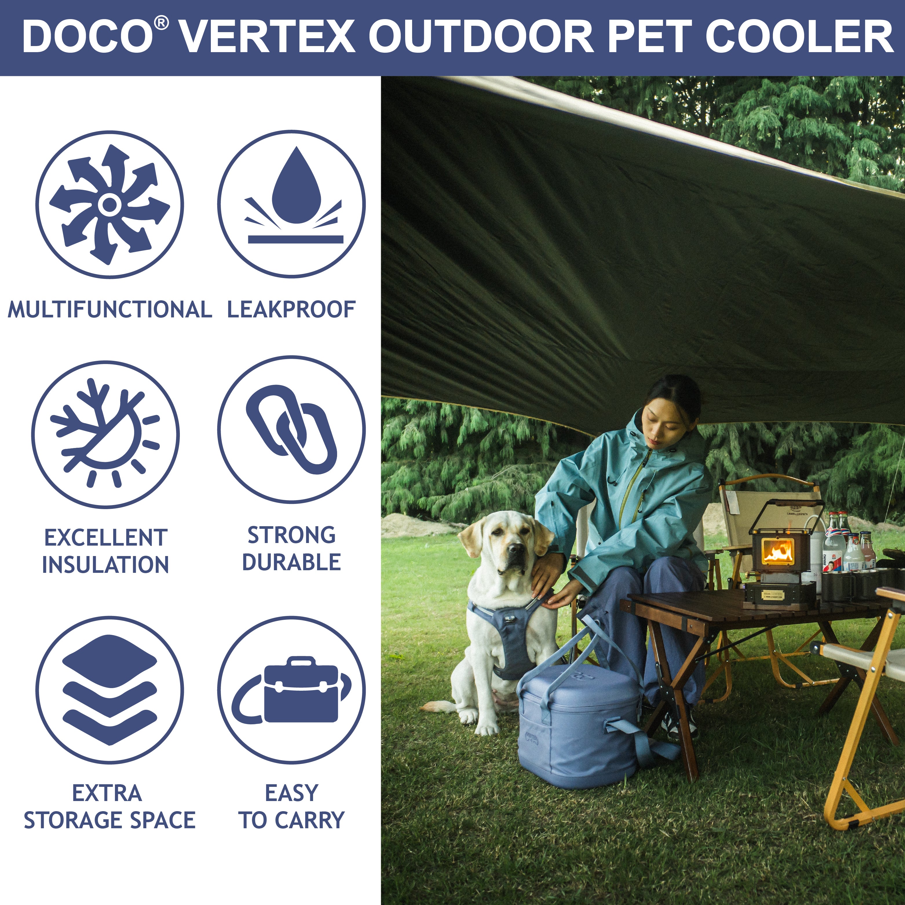 The DOCO® VERTEX Outdoor Pet Cooler is crafted from lightweight Oxford fabric, designed for durability and convenience. Its exterior features a coated, water- and stain-repellent surface that easily wipes clean with a damp cloth. For superior insulation, the middle layer is filled with 10mm high-elastic sealing foam, helping maintain food temperature—hot, cold, or fresh—up to 2 days. The inner liner, made from seamless PEVA material using a hot-pressing process, ensures excellent insulation and heat resistance with no seams and no leaks. This cooler is built for long-term insulation, keeping your pets food fresh while being easy to clean—saving you time and