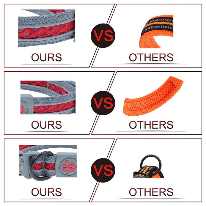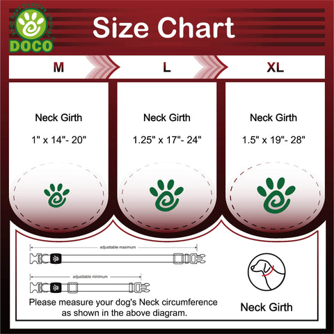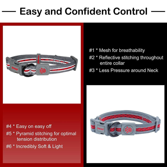 - DOCO® Lunar Air Mesh Collar features lightweight and durable high quality air mesh that provides a comfortable fit, total control and style between your dog's neck and collar. Ultra comfort design reduces pressure while your buddy is pulling. Dual layered mesh for higher tensile strength and more breathability function. Easy on and easy off, durable side release plastic buckle with adjustable tri-glide for custom fits. Reflective rope piping to ensure your buddy is safe and seen at all times. Sewn with heavy-duty stitching for lasting quality and constructed with metal D-Rings for attaching identification tags and leashes. Solid and vibrant colors are easy to see. Make sure to select the matching DOCO® leashes to complete your buddies look!